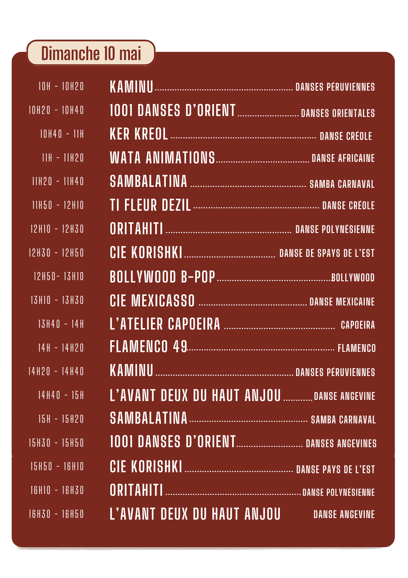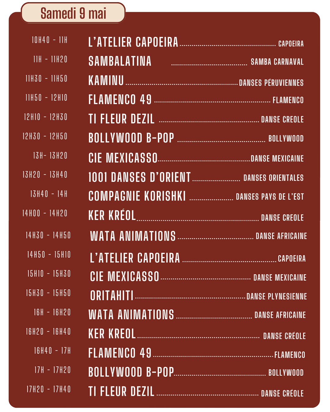 Au centre de cet espace, une piste dédiée accueillera des initiations et démonstrations toutes les 15 minutes, animées par des associations et compagnies passionnées. Que vous soyez curieux, amateur ou danseur confirmé, vous pourrez observer, apprendre et surtout… participer.